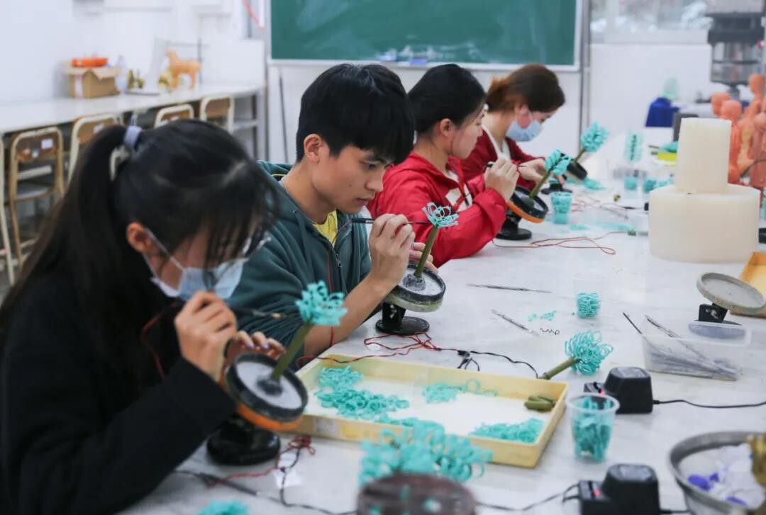 接着,陈爽一行详细了解了虚拟仿真公共实训中心情况;珠宝学院的发展历程、高水平专业群建设、珠宝首饰铸造研发成果;艺术设计学院的环境艺术设计工作坊以及学生创业公司等。