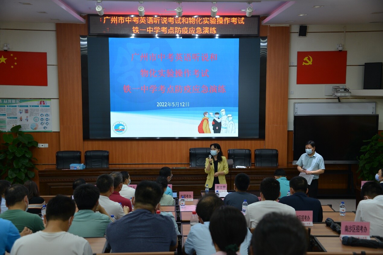 为贯彻落实中央、省、市新冠肺炎疫情防控各项要求,检验和提高中考英语、理化实验操作考试各考点组考防疫应急处置能力,确保考试安全平稳有序,512日下午,市招考办在广州市铁一中学(越秀校区)现场观摩中考英语听说考试和理化实验操作考试考点防疫应急演练