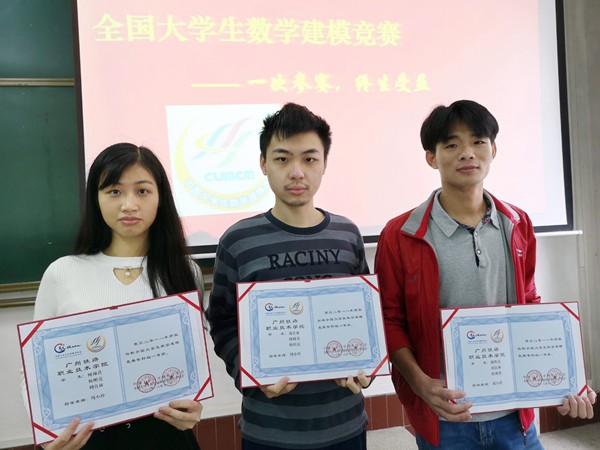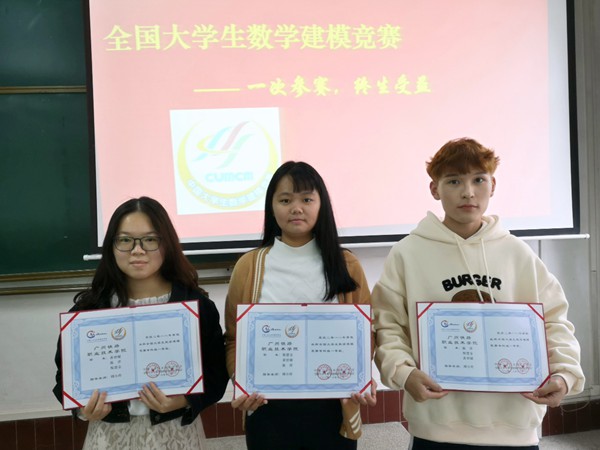 近日,广东省工业与应用数学学会在广东省潮州市召开了“2018年学术年会暨大学生数学建模竞赛颁奖会”,宣读了广东省2018年全国大学生数学建模竞赛获奖名单,广州铁路职业技术学院学生喜获国家一等奖2项、省一等奖2项、省二等奖8项、省三等奖6项的优异成绩。其中周良林(铁道信号16-1班)、杨明亮(佛地司16-1班)、何柳君(物流16-2班)组成的参赛队和倪楚金(自动化17-1班)、黄碧媛(自动化17-1班)、练洋(铁道信号17-1班)组成的参赛队双双荣获2018年全国大学生数学建模竞赛国家一等奖。
