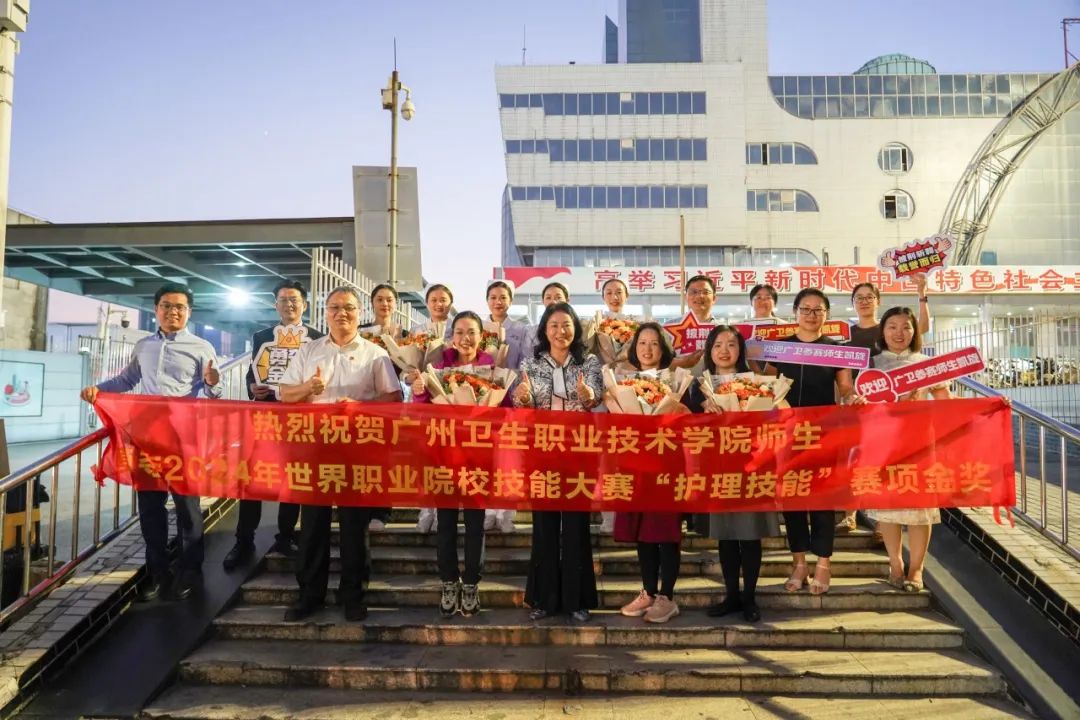 11月1日晚,学校党委书记余莎、副校长杨翀及办公室、护理学院、教务处、宣传统战部等相关部门负责人和教师代表一行前往广州北站,用鲜花和掌声热烈迎接获奖师生载誉凯旋。在白云校区,师生代表齐聚一堂,共同为载誉归来的师生们送上真诚的祝贺,分享喜悦和荣誉。