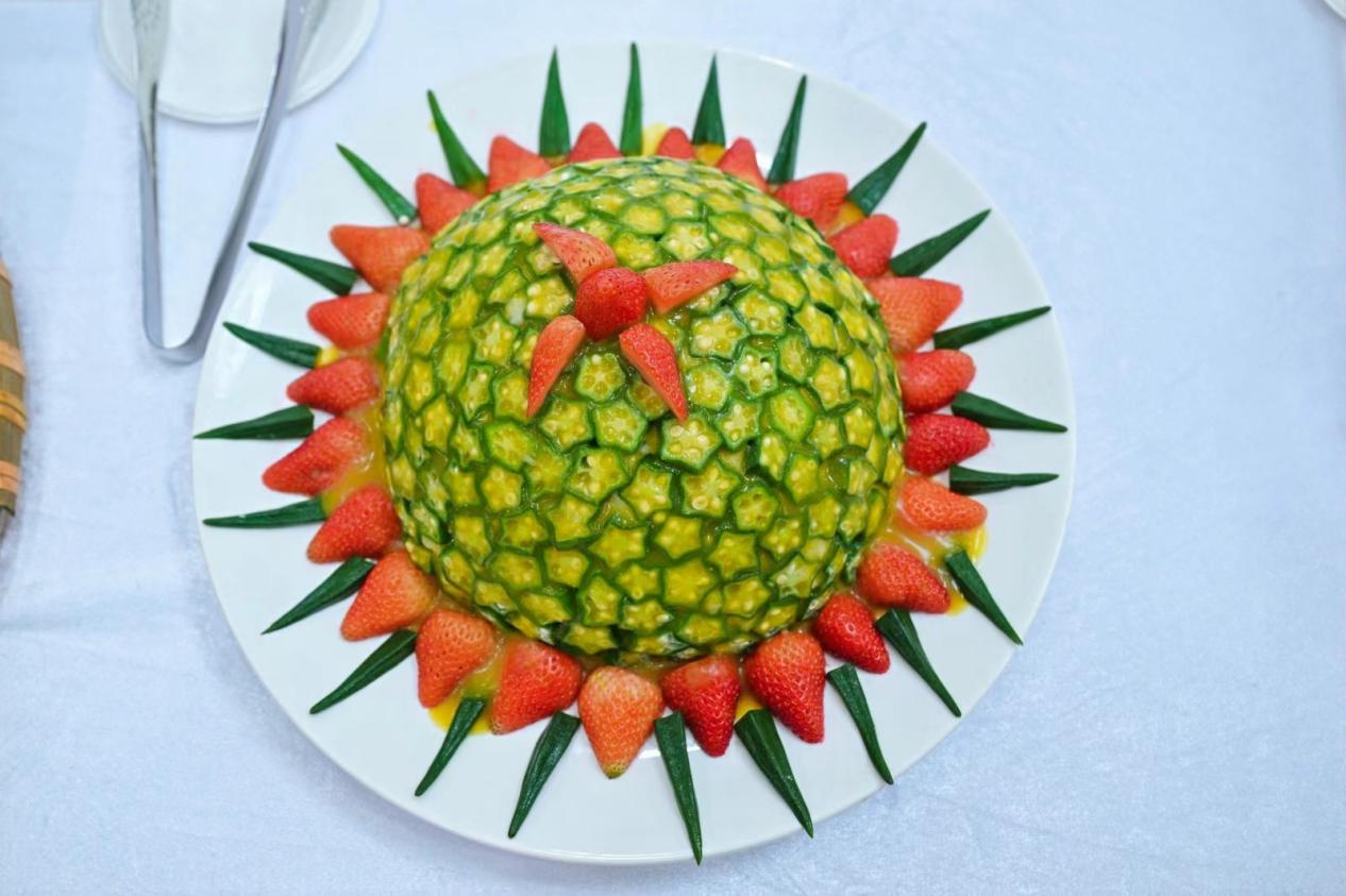 注:参赛菜品均为各参赛学校食堂的菜品。因需参加评选,各校厨师代表对菜品进行了装饰。