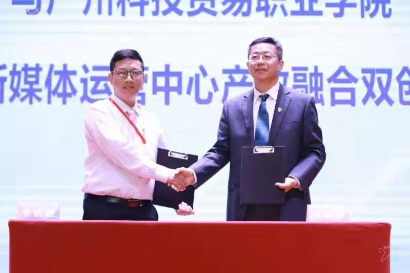 百创通供应链科技(广东)有限公司出资与广州科技贸易职业学院共建“新媒体运营中心产教融合双创基地”签约。
