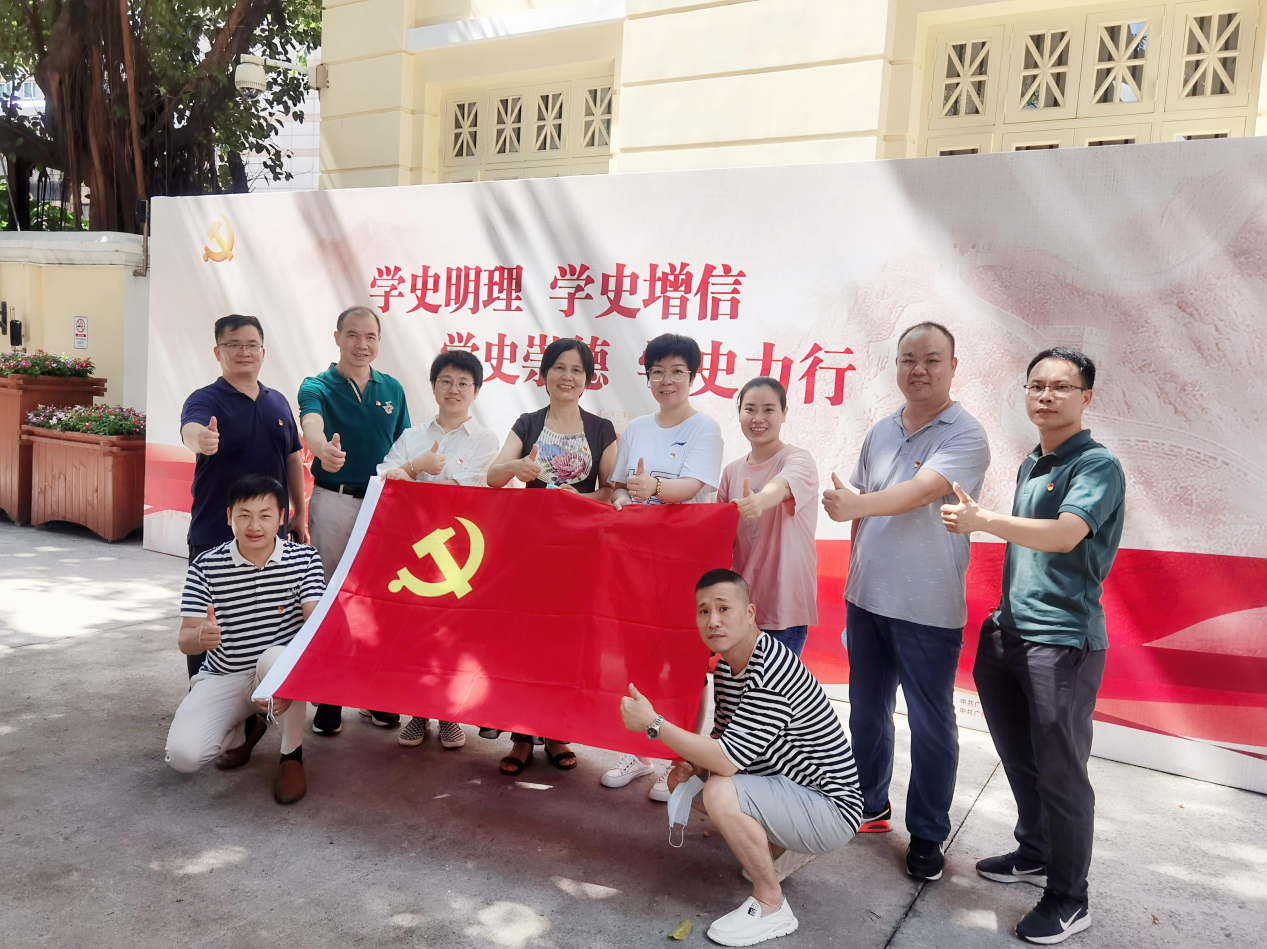 活动伊始,全体党员参观了“革命人永远年轻——广州起义部分英烈主题展”,烈士陵园内松柏环抱、绿荫满园、安静庄严,全体党员瞻仰了广州起义纪念碑、广州公社烈士墓、叶剑英元帅墓、英雄广场等园内标志,在烈士纪念碑前重温入党誓词。随后,集中参观了位于园内的广东革命历史博物馆,馆内展览分为了“百年风云”和“日趋近代化的中心城市”两大部分。通过照片、文物等党员们学习了解了1840年鸦片战争爆发至1949年广州解放100多年间的革命历史,深刻感受这片土地上发生过的百年风云。参观结束后共唱《我和我的祖国》《歌唱祖国》等歌曲,向中国共产党和祖国献上最诚挚的祝福。