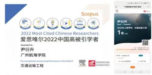 广州航海学院尹衍升教授连续5年入围中国高被引学者年度榜单