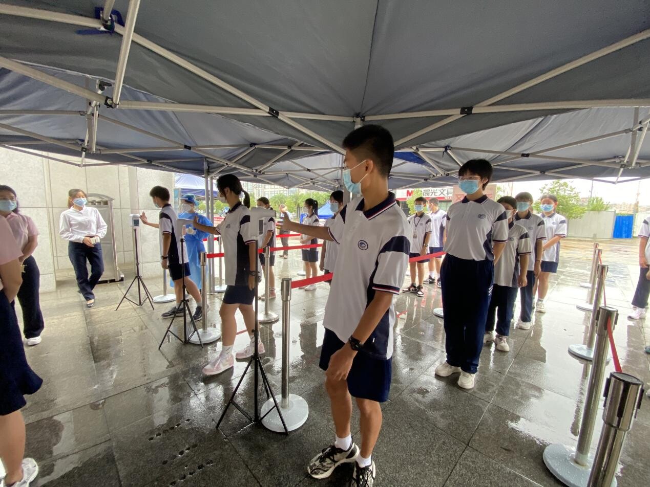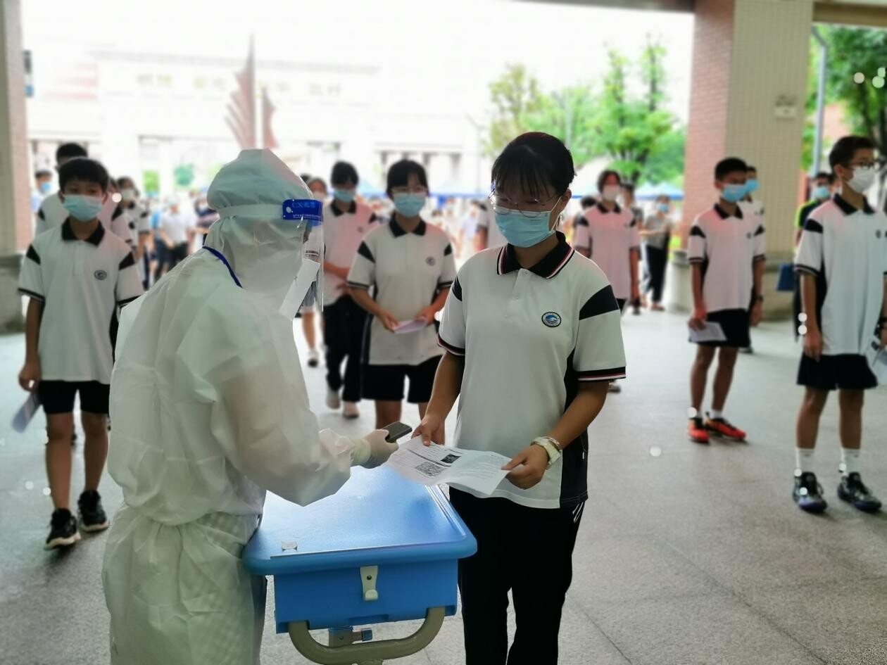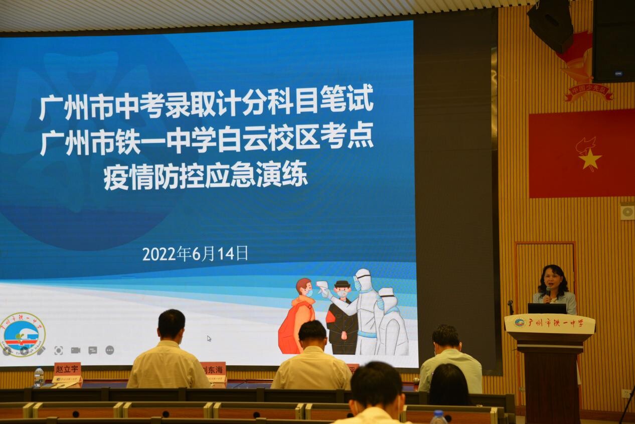 为贯彻落实中央、省、市关于新冠肺炎疫情防控的各项要求,积极应对当前疫情发展复杂形势,认真稳妥做好我市2022年中考录取计分科目笔试工作,6月14日下午,我市在广州市铁一中学(白云校区)举行中考考点防疫应急演练,市卫健委、市教育局、市招考办和各区招考办代表参加观摩。