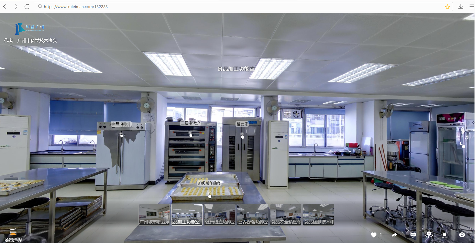 食品加工功能室设有焙烤食品制作设备,有专业烤箱、和面机、发酵机、操作台、模具等,可现场进行焙烤食品加工体验,不仅教给市民如何在家里制作营养安全的面包、蛋糕,而且教会大家如何识别焙烤食品的好坏。